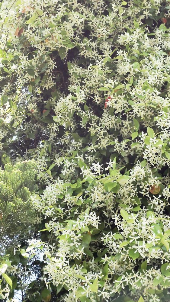 テイカカズラの白い花見事に満開ですね♡