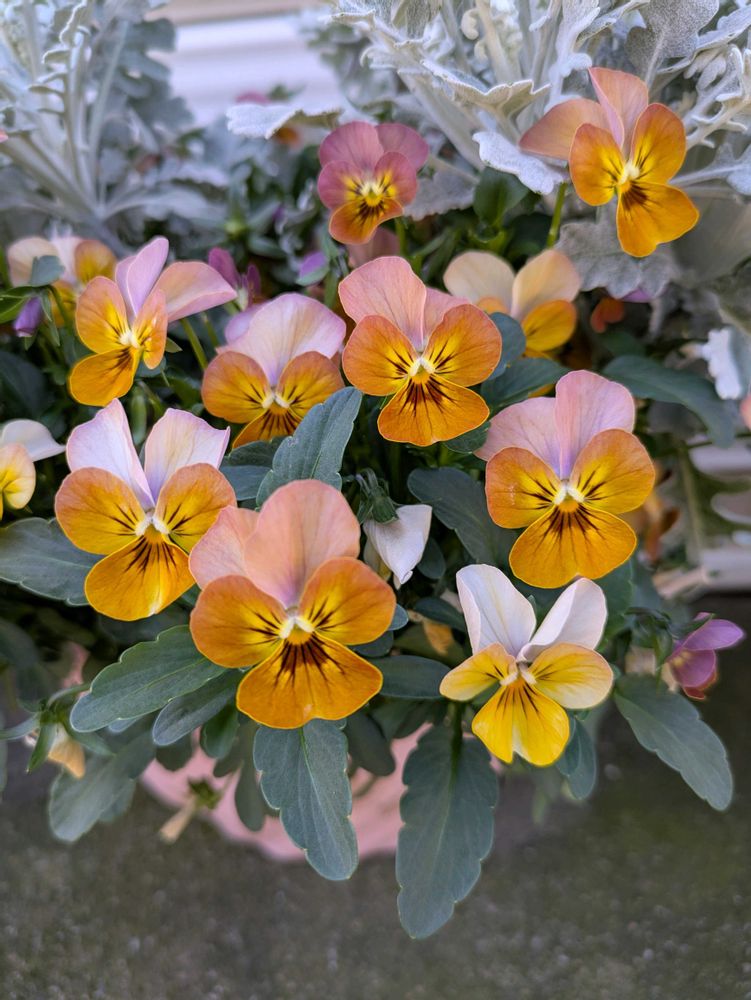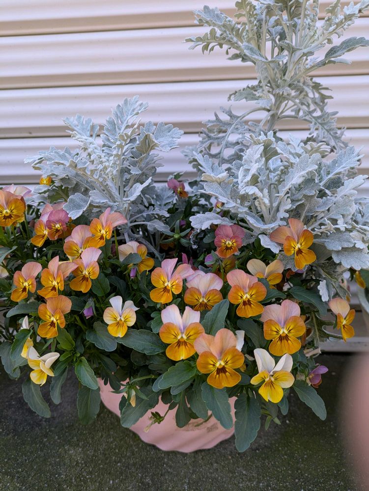 ビオラの雰囲気とシロタエギクちょっとシックになってます😂シロタエギクは冬越しのものです💞