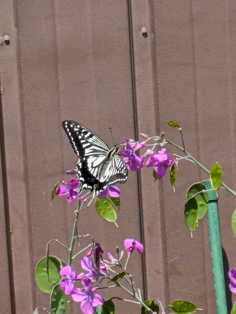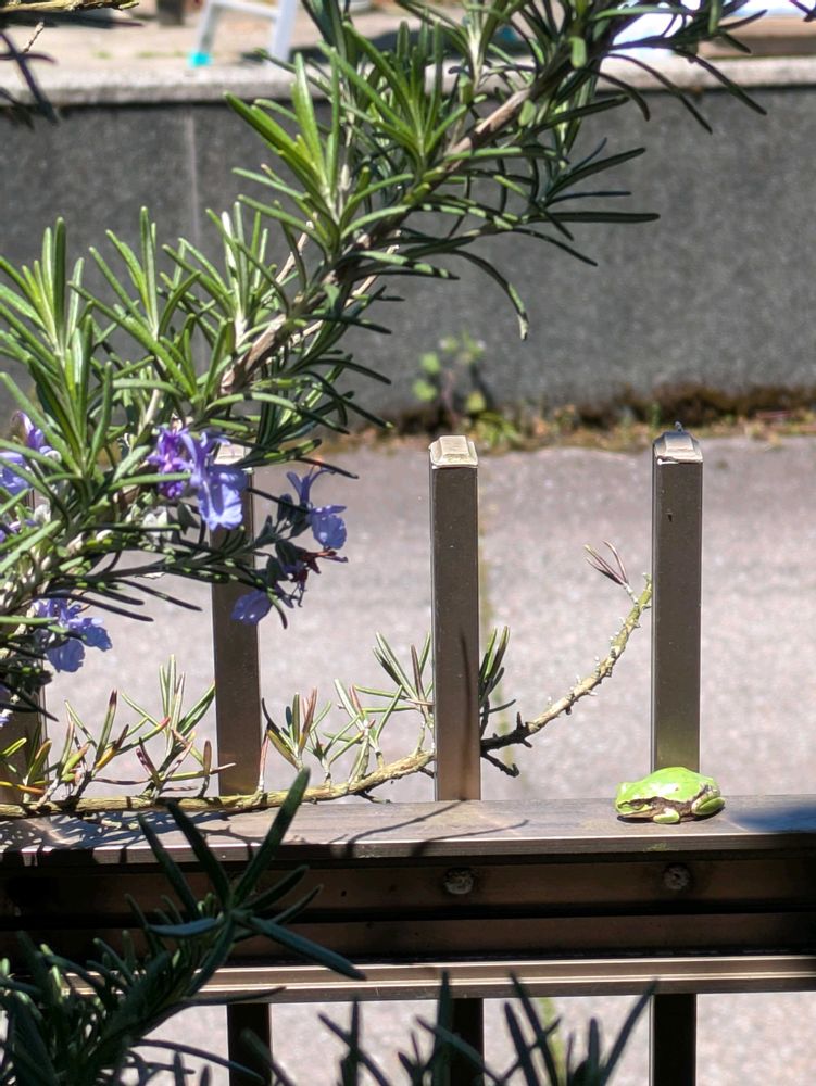 天気が良いからナミアゲハ🦋とフェンスの上でくつろぎ中の🐸ちゃん😅
