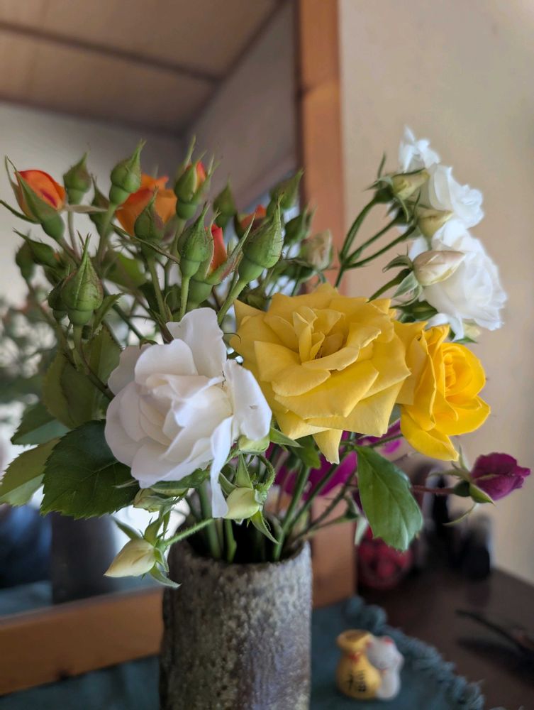 玄関に活けた香椎花園のつるバラの花が減ってきたので