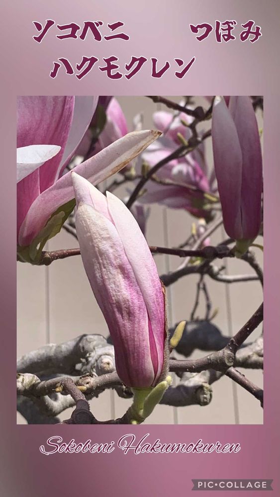 ソコベニハクモクレンは、初めてです。趣のある色合いのモクレンですね❗