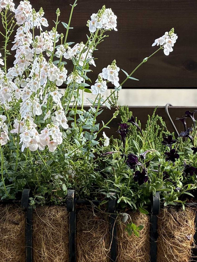 いま、ハンギングで満開のディアスキアの横に。大きめハンギングなので、2株入れてみた。