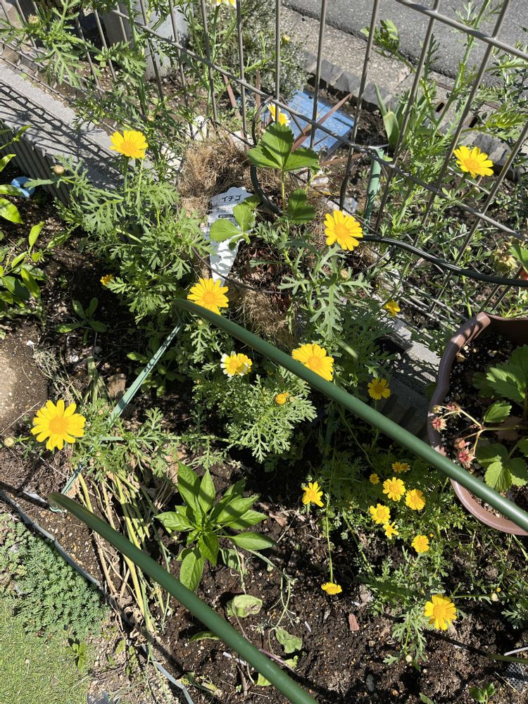 はちさんのナス,春菊,春菊のお花の投稿画像