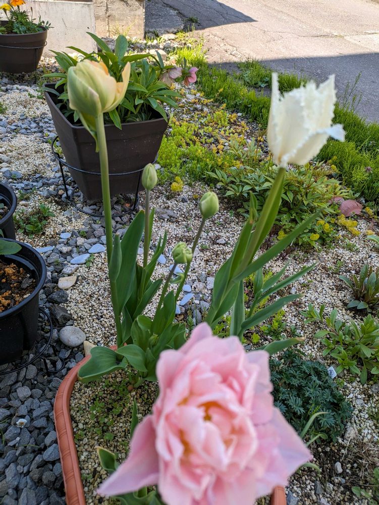 適当に寄植えして、鉢も置いてみました😆そのうち花壇全体UPします