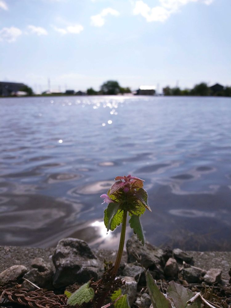 ⑤ 田植え前のキラキラ✨な水辺の景色を小さなヒメオドリコソウが独り占めしてました✨