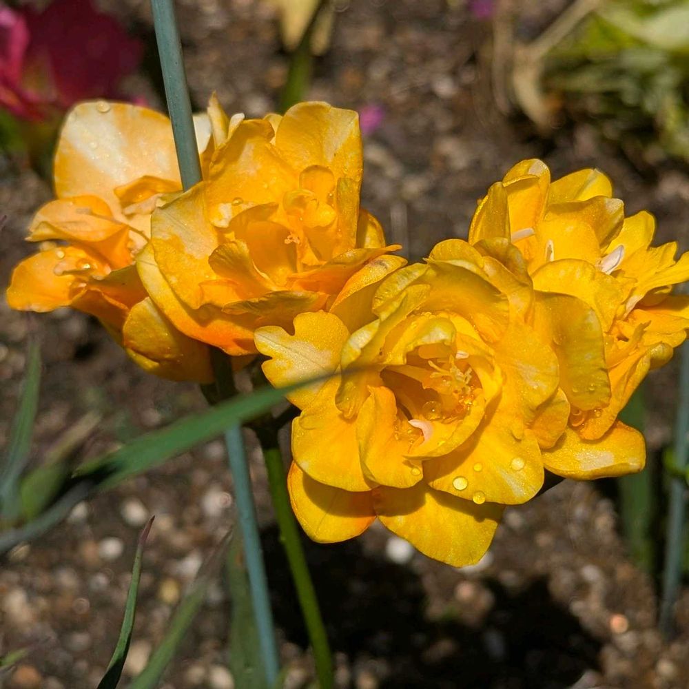 フリージアの地植えのは、ほぼ終わりかけで、この矮性八重咲きフリージアも大和農園さんのを昨年花壇に植えていますよ🤗