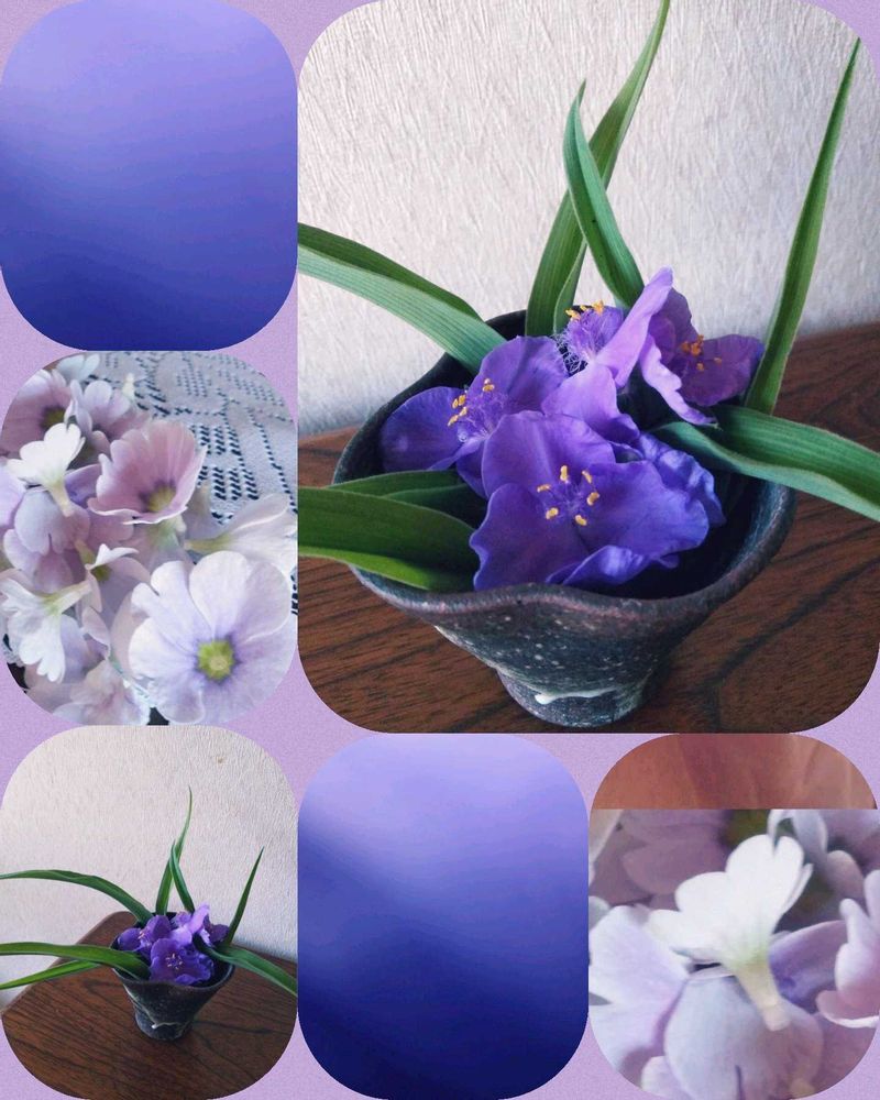 素敵な器にオブニコカとムラサキツユクサがとっても似合ってますね💜