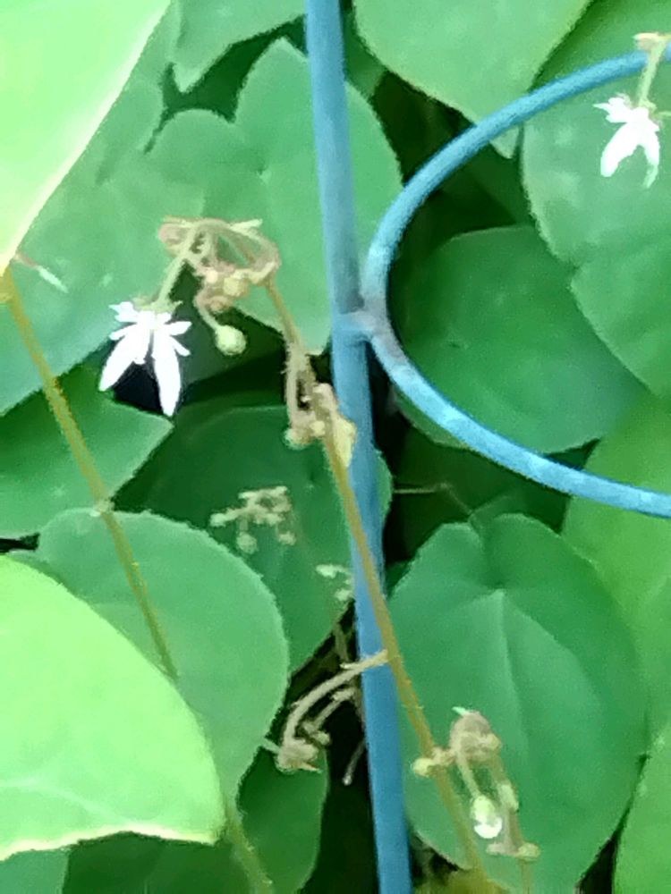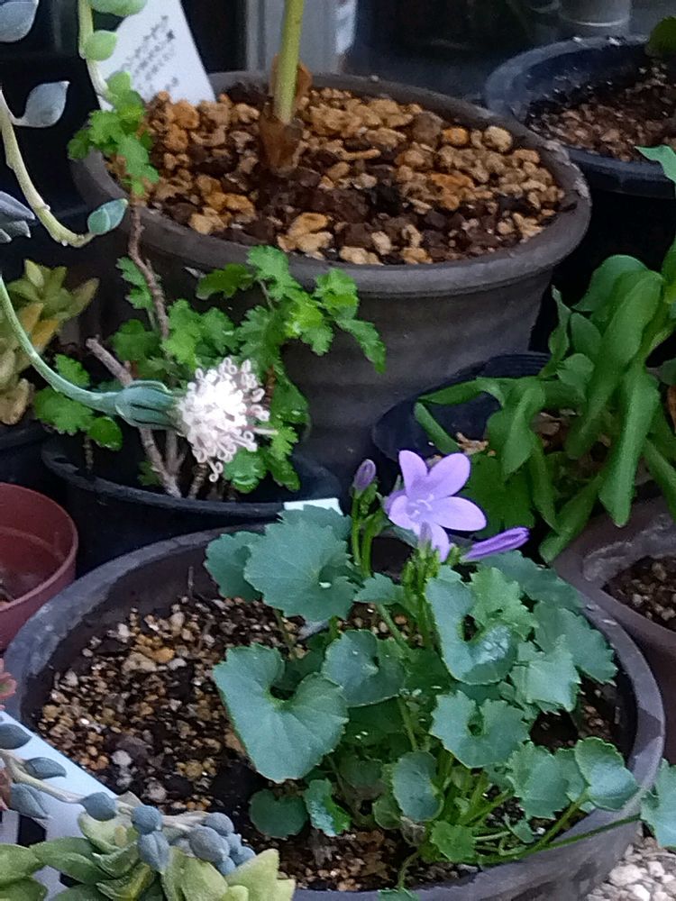 コアジサイが咲いていました‼️長年我が家で暮らしているベルフラワー、少し少なく成りました❗️ユキノシタは此れから長く咲いてくれます。グリーンネックレス地味な花です🎶