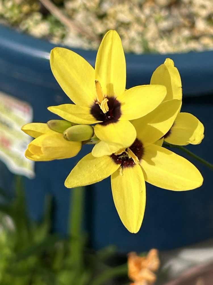 さん、生協からの黄色い球根4種セットでホメリア、グラジオラス、イキシアと咲いて来ました🌼