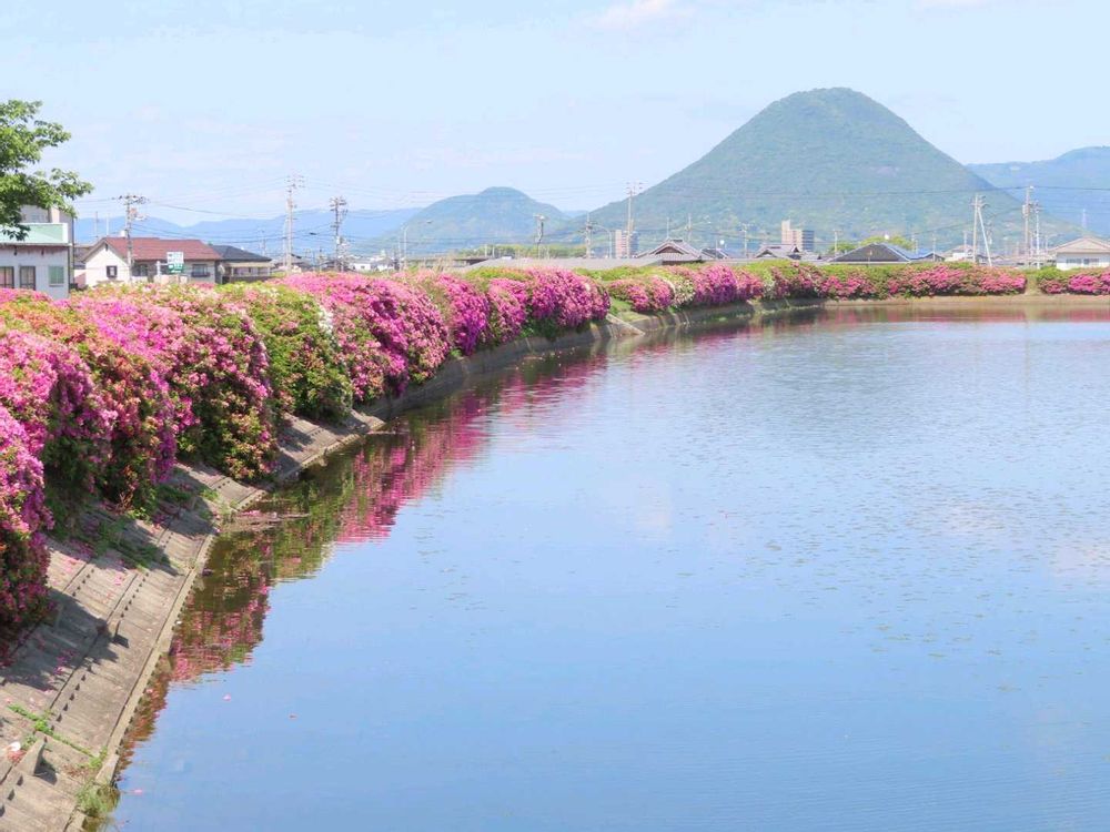 池をぐるりと囲むように咲くツツジがとても綺麗で、讃岐富士とのコラボや水面への写り込みも素敵でした。
