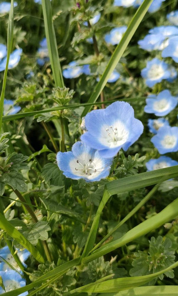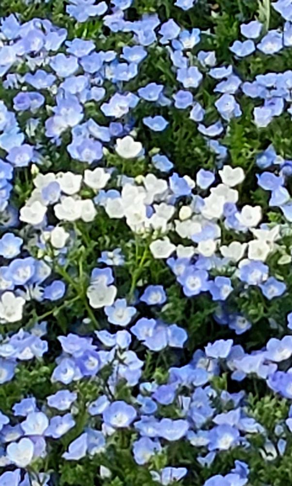 GW最終日ネモフィラの里へ家族で散歩に行ってきました。1〜3ネモフィラ、4,5ホトケノザ。ネモフィラは白いのと青いのが混ざり綺麗な景色でした。