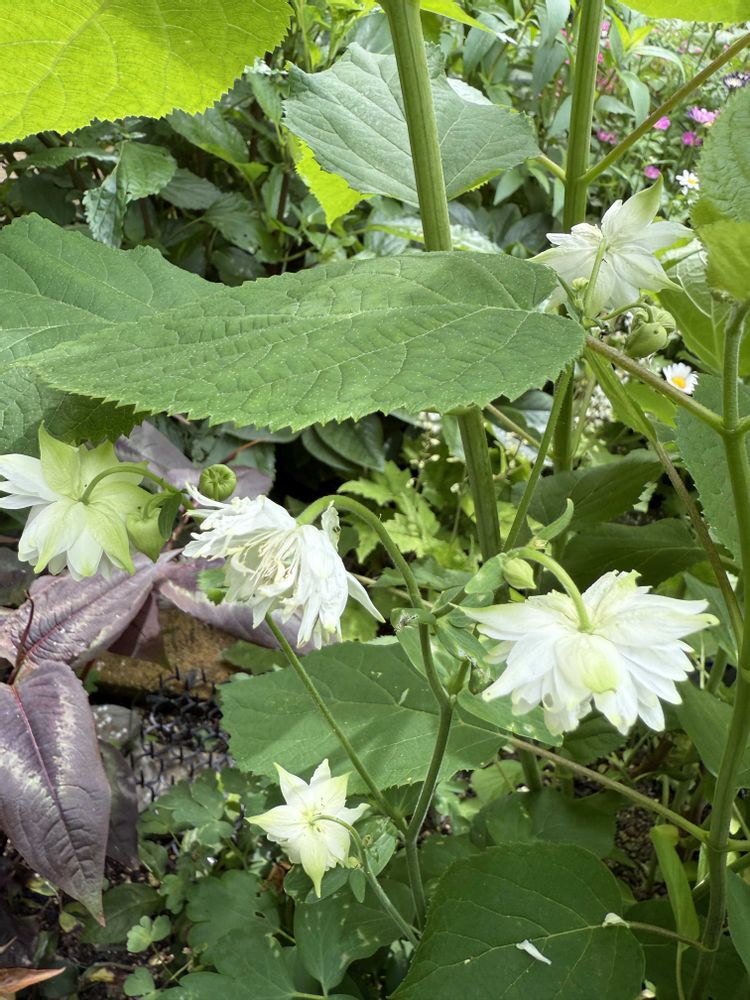 アナベルの奥にノラバローあったよねーと思いながら見てみると花が咲いていた。