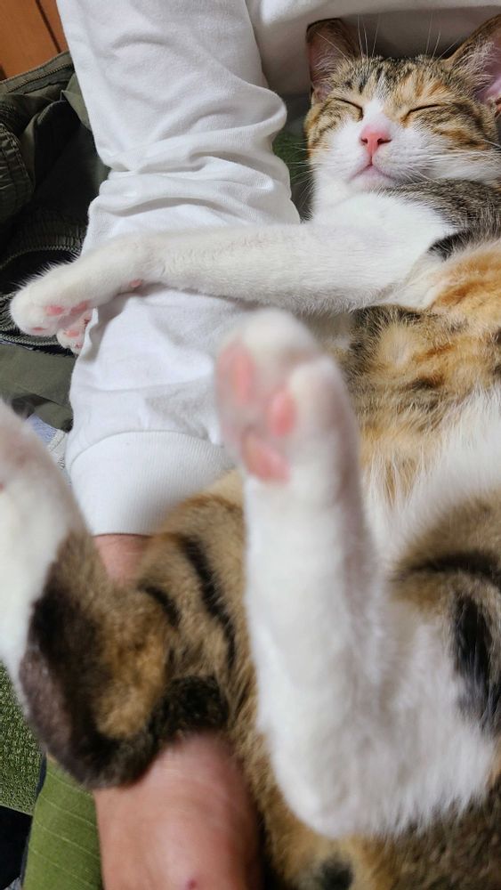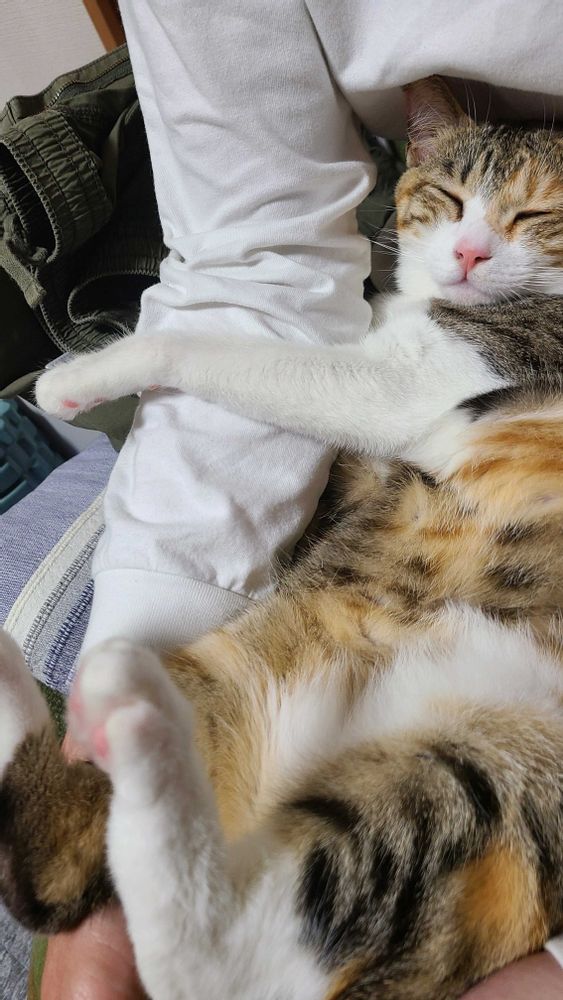 ネコちゃん😸甘えん坊です😸息子の腕捕まえて❗離れないぞ😁って爆睡です💤