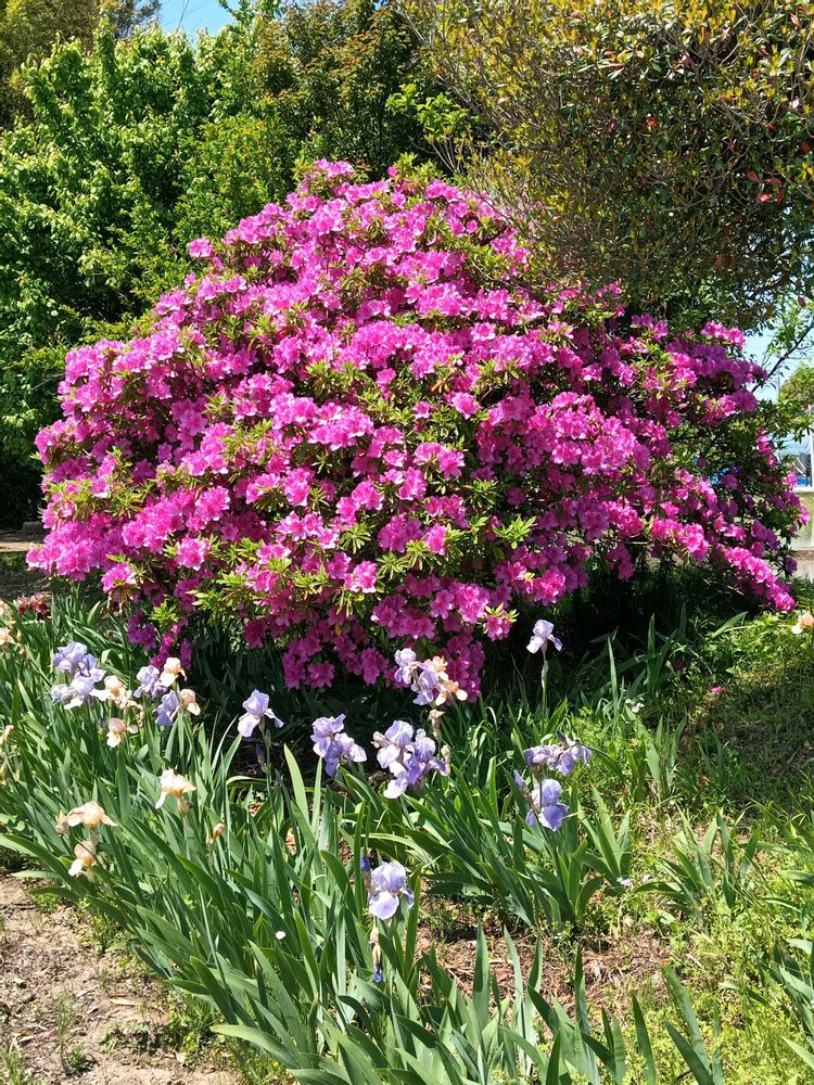 お友達の畑の側に大きなツツジとジャーマンアイリスお花見に行かなくても充分に楽しめます😘