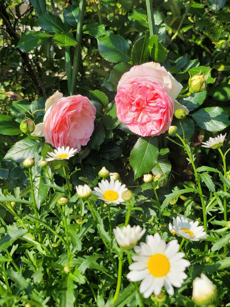 挿し木のピエールさん🌹大きくなり🌿水やりも大変なので、同期のピエールさん2本とルージュさん2本を地植えしました🌿大きくなり沢山咲いてほしいですね🌹🌿