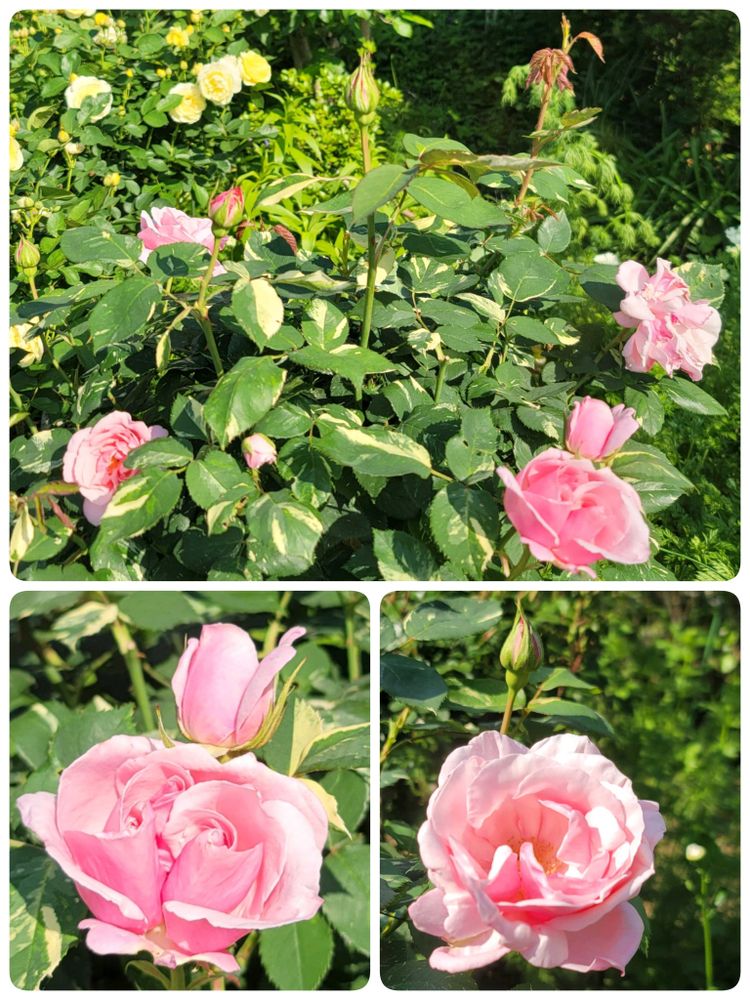 ヘルシューレン🌹斑入り葉のバラは珍しいですよね🌿花持ちはイマイチですが🩷花付きが良く次々と咲いてくれます✨🌹🩷