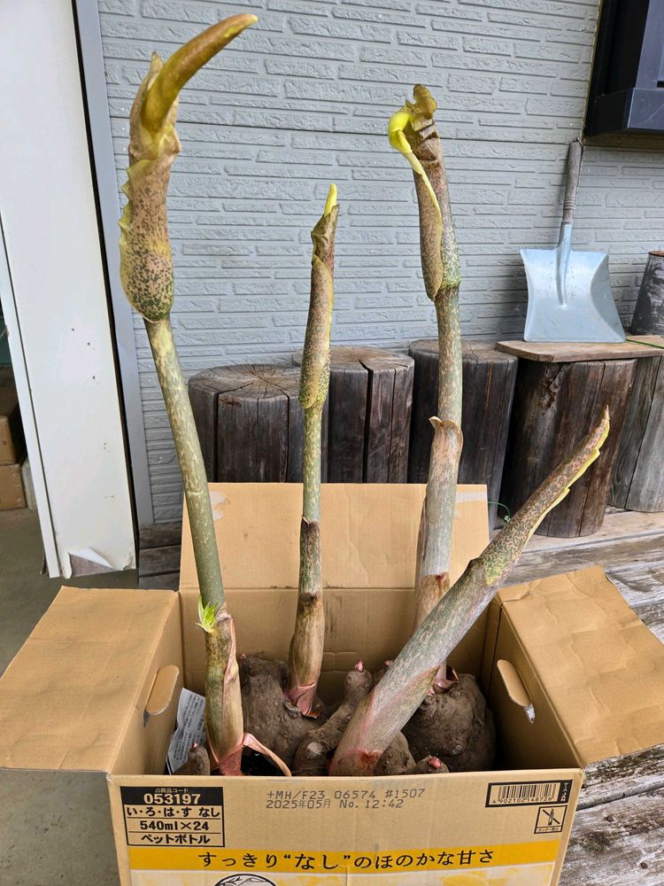 物置の光が当たらない所に置いていたやつが、花が咲きそうなので、ハコのフタを開けておきました
