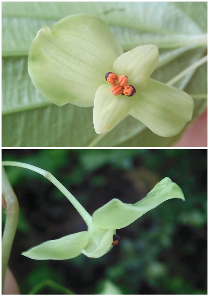 4枚の花被片のうち、1枚が大きく目立ちます。