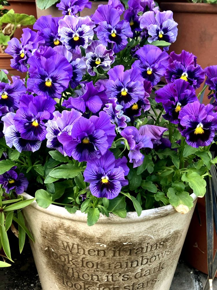 3️⃣番外編、うちの夏越しパンジーは、フリルがしっかり出て、モリモリ咲いています😊