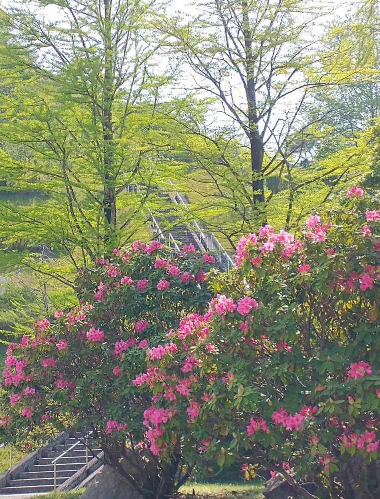 鮮やかなピンクの花が新緑の林に映えてました💗💚