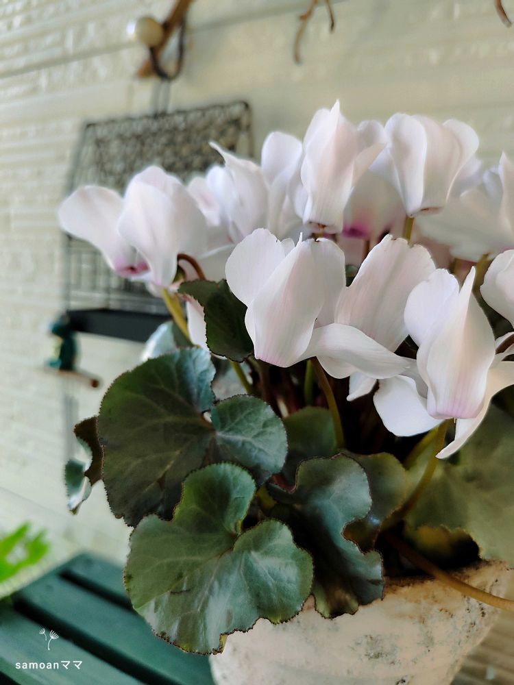 samoanママさんのシクラメン プラチナリーフ アフロディーテ,꒰ღ˘◡˘ற꒱かわゅ~,植物のある暮らしの投稿画像