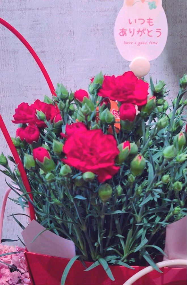 お花屋さんの店頭で目にしました。母の日が間近ですね😃やっぱり赤いカーネーションが定番でしょう💖✴️