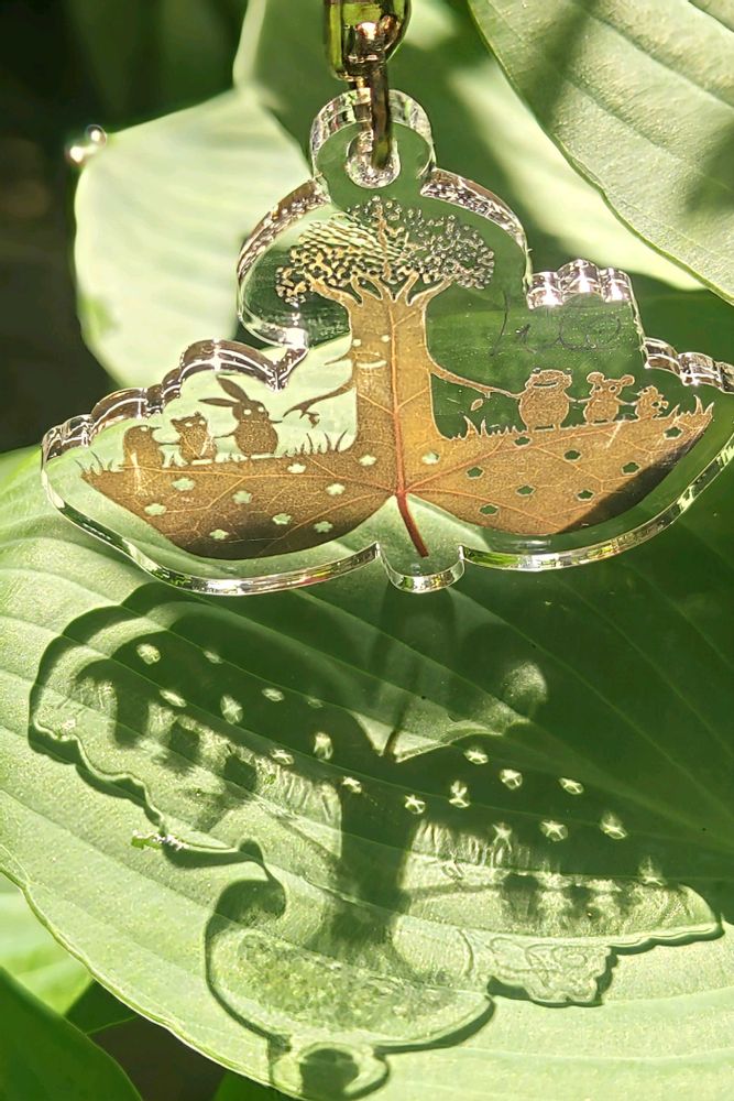 リトさんの葉っぱ切り絵キーホルダー、楽しい世界が広がりますね。