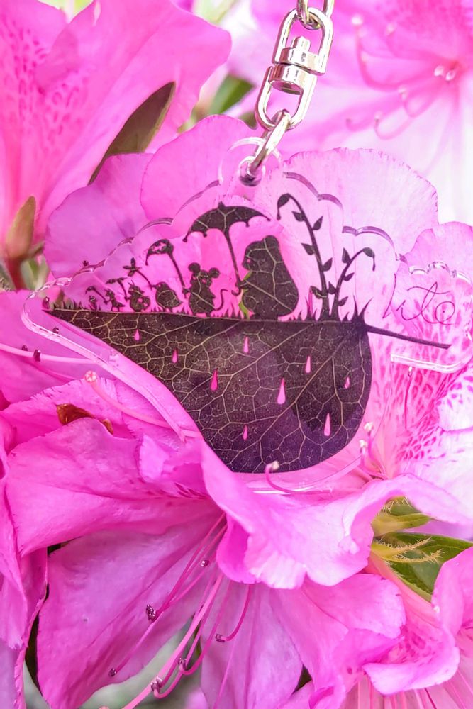 リトさん葉っぱ切り絵キーホルダー