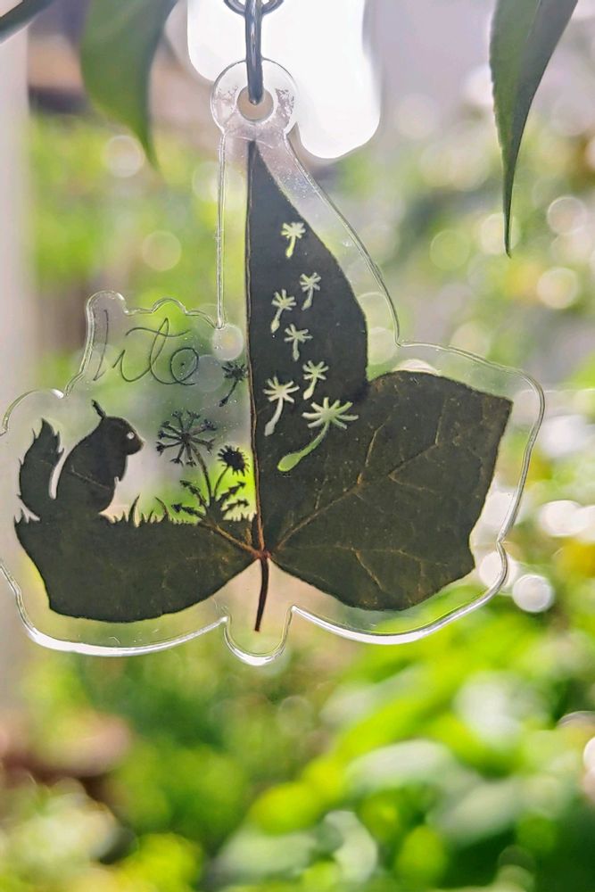 リトさん葉っぱ切り絵のキーホルダー