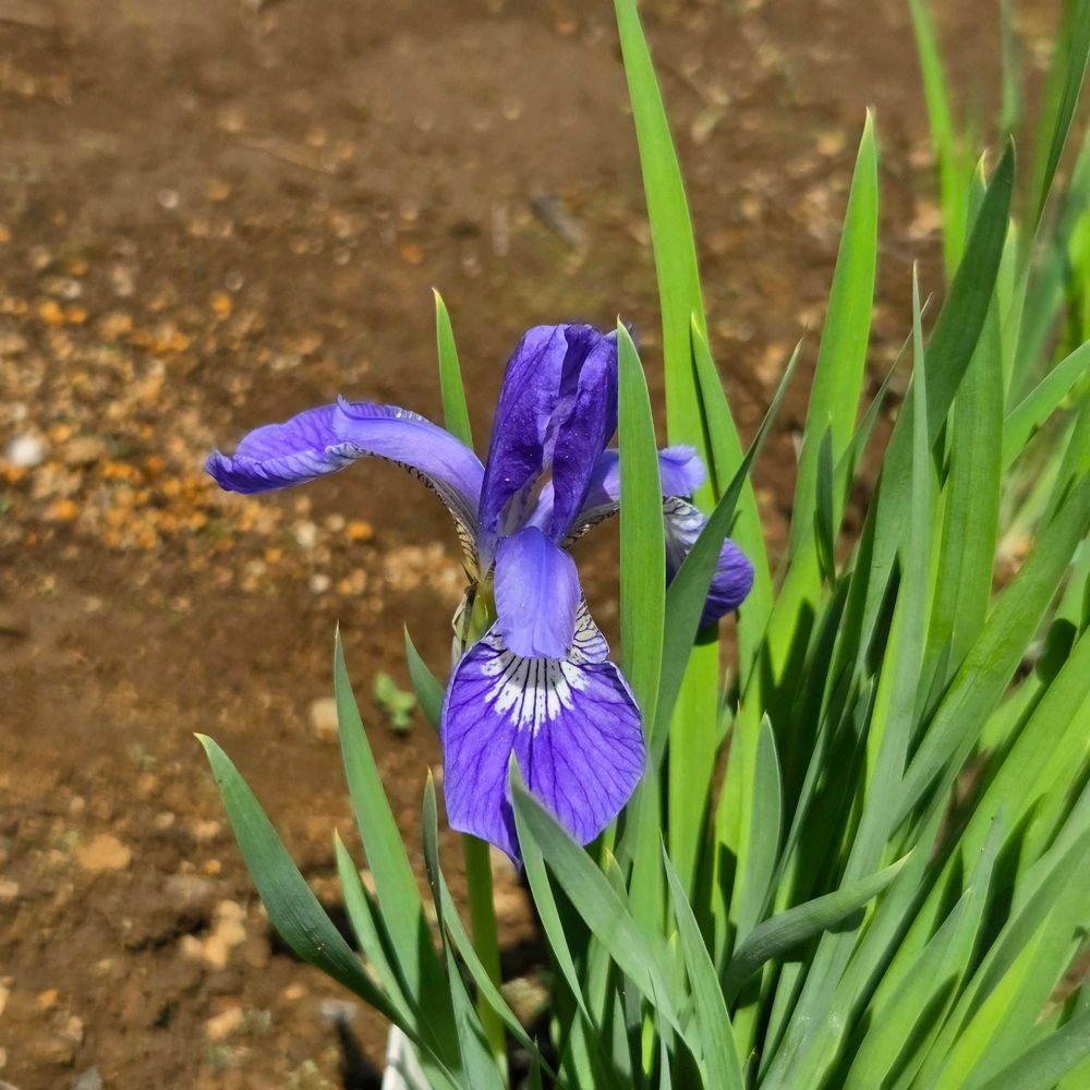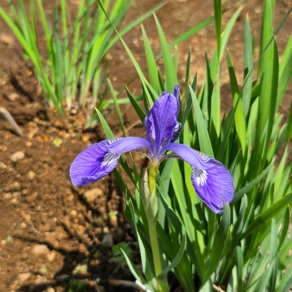 普通のアヤメよりもずっと小型(草丈15cm程)で本来は葉に隠れるようにして開花するそうですが、今回は結構しっかりと培肥したからか葉と同じくらいの位置で開花しています👍