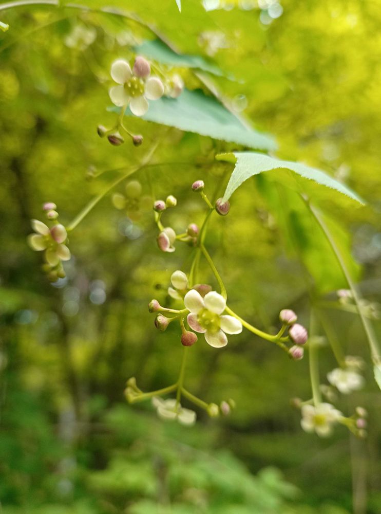 ツリバナのお花、花びらの一枚がピンク色🩷がかっていてとっても可愛いですね💕