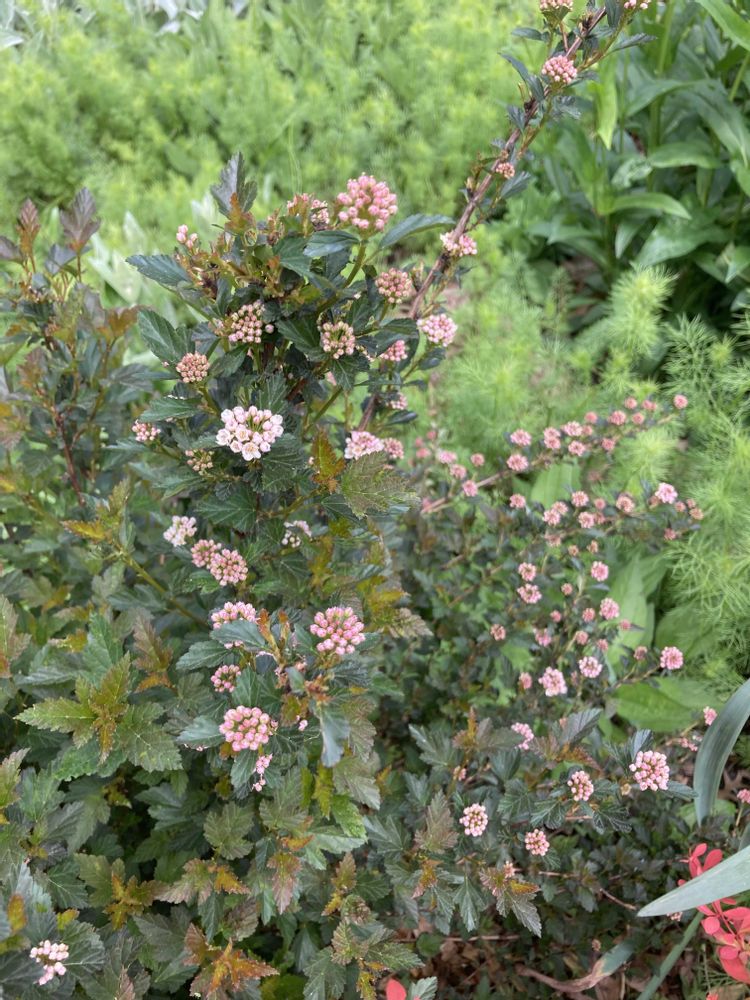 花壇外側の左側は鹿に剪定して貰ったので今年は花がありませんが、内側の右側にはいっぱいお花をつけてくれました‼️めちゃくちゃ可愛いです🩷 大きくなーれ💪💪