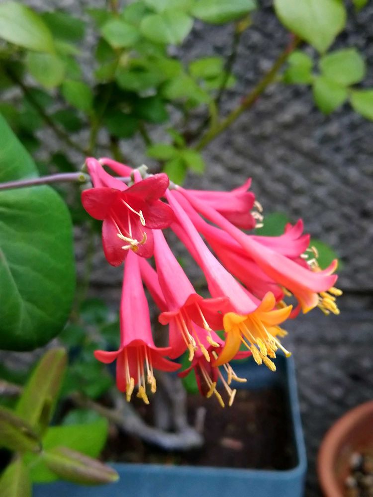 ツキヌキニンドウ(ハニーサックル ドロップモアスカーレット) とても可愛い大好きな花です。