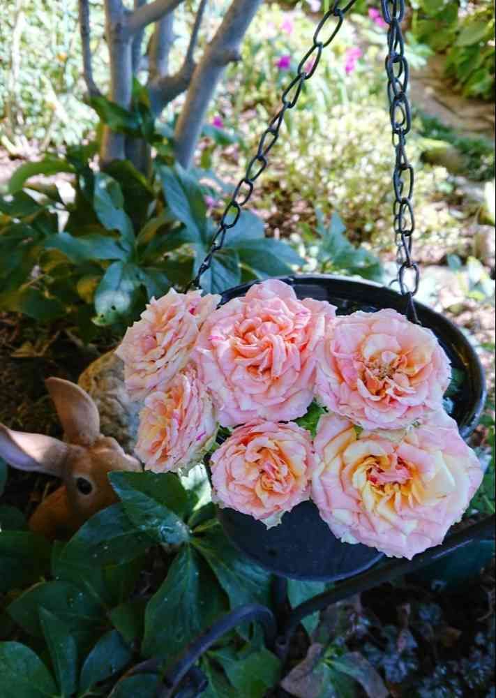 ウサギさんもクンクンしに来ていますね😄薔薇の魅力は、人間だけでなく