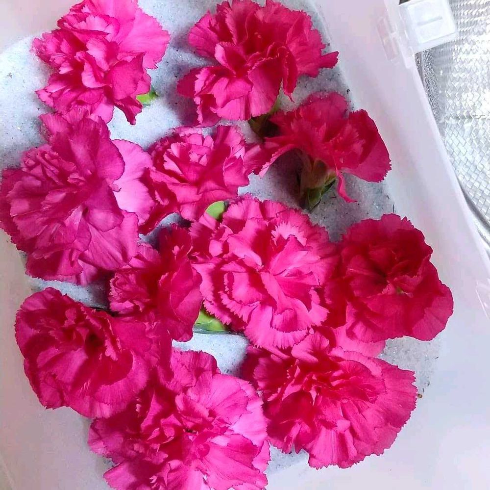 カーネーションはシリカゲルに入れなくても逆さに吊るすだけで結構綺麗にドライになりますよ〜