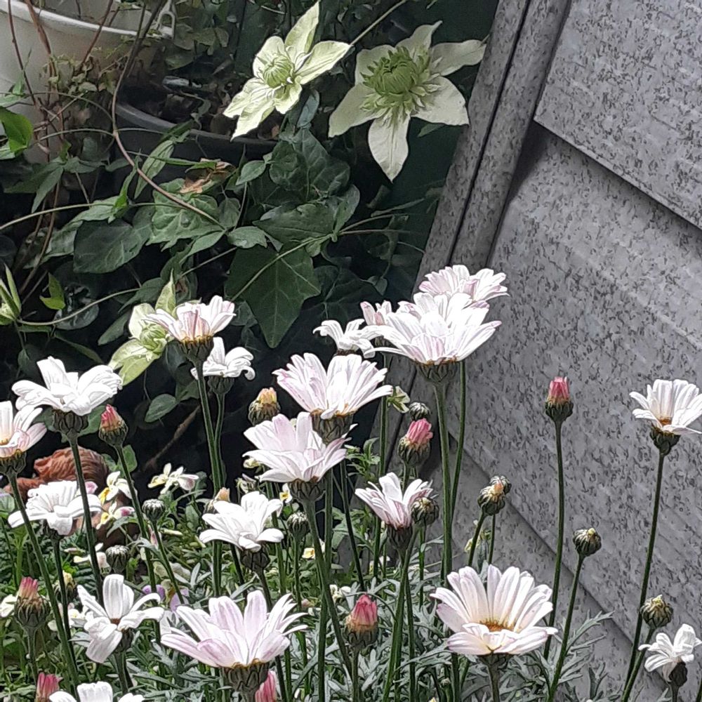 薄紫のお花とクレマチス白万重のコラボが素敵です💜💕