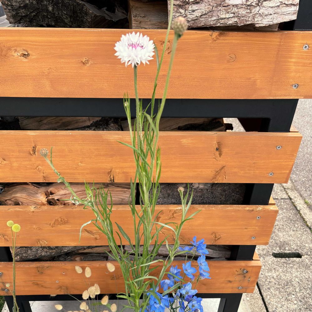 玄関前の寄鉢が寂しかったので、デルフィニウムとセントーレアを足しました!