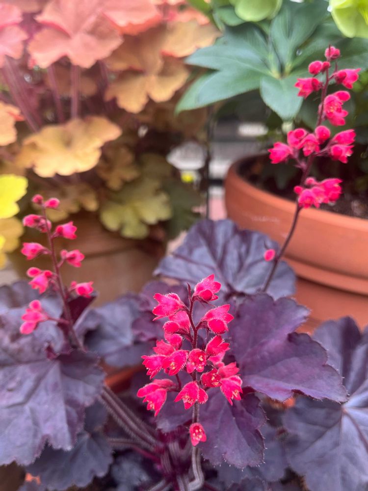 ヒューケラは色んな色があるから葉っぱなのにカラフルで良いよね😊