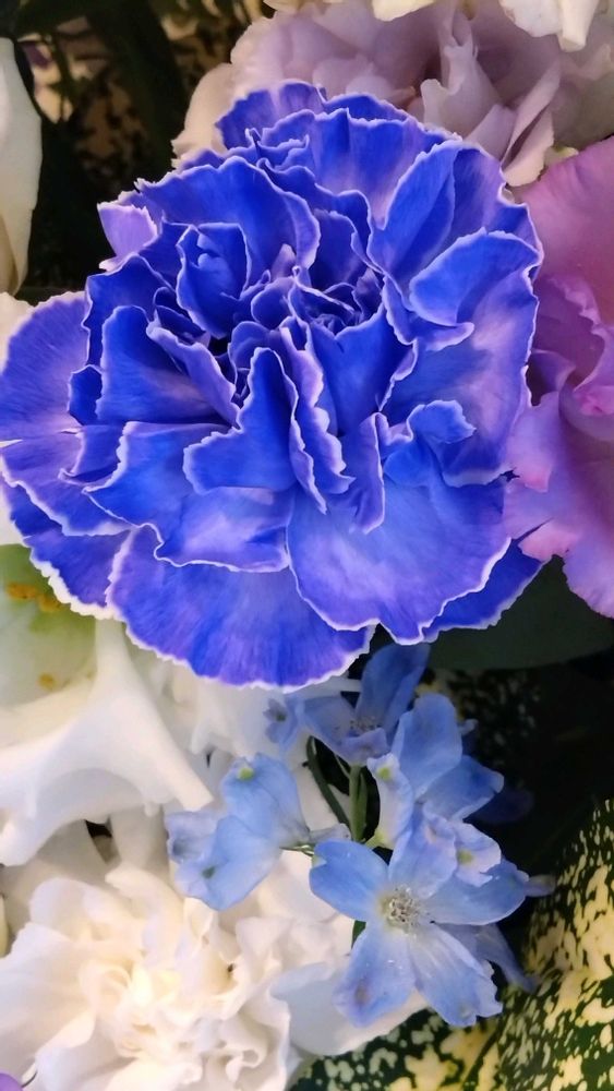 ①こちらは染めカーネーションですが、色が好きです💙
