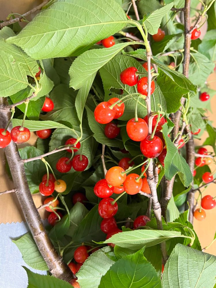 枝付きさくらんぼ🍒凄いねฅ(º ロ º ฅ)