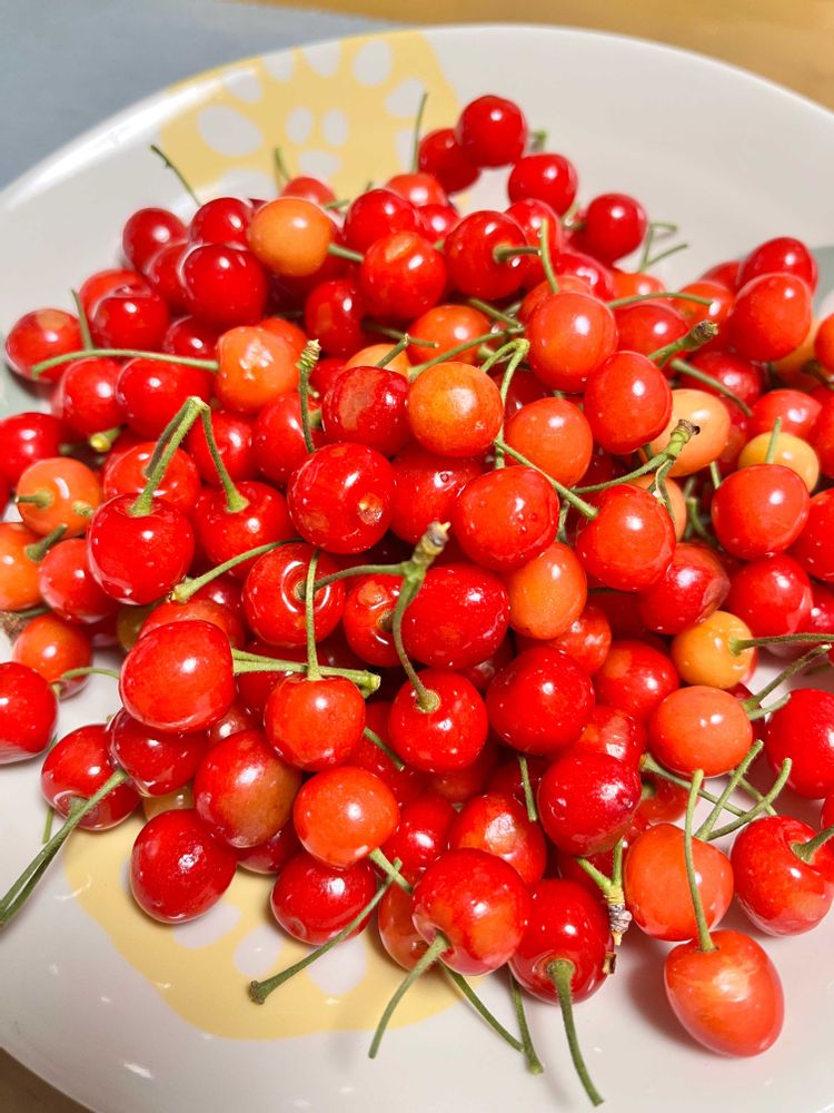 さくらんぼ🍒いただきました。摘んだらお皿いっぱいになりました💕