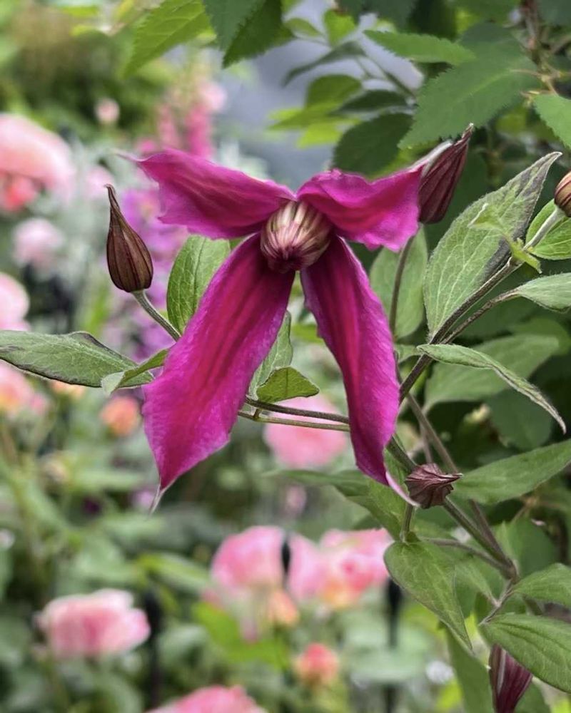 隣で咲くクレマチスと同じような色合い💜💚