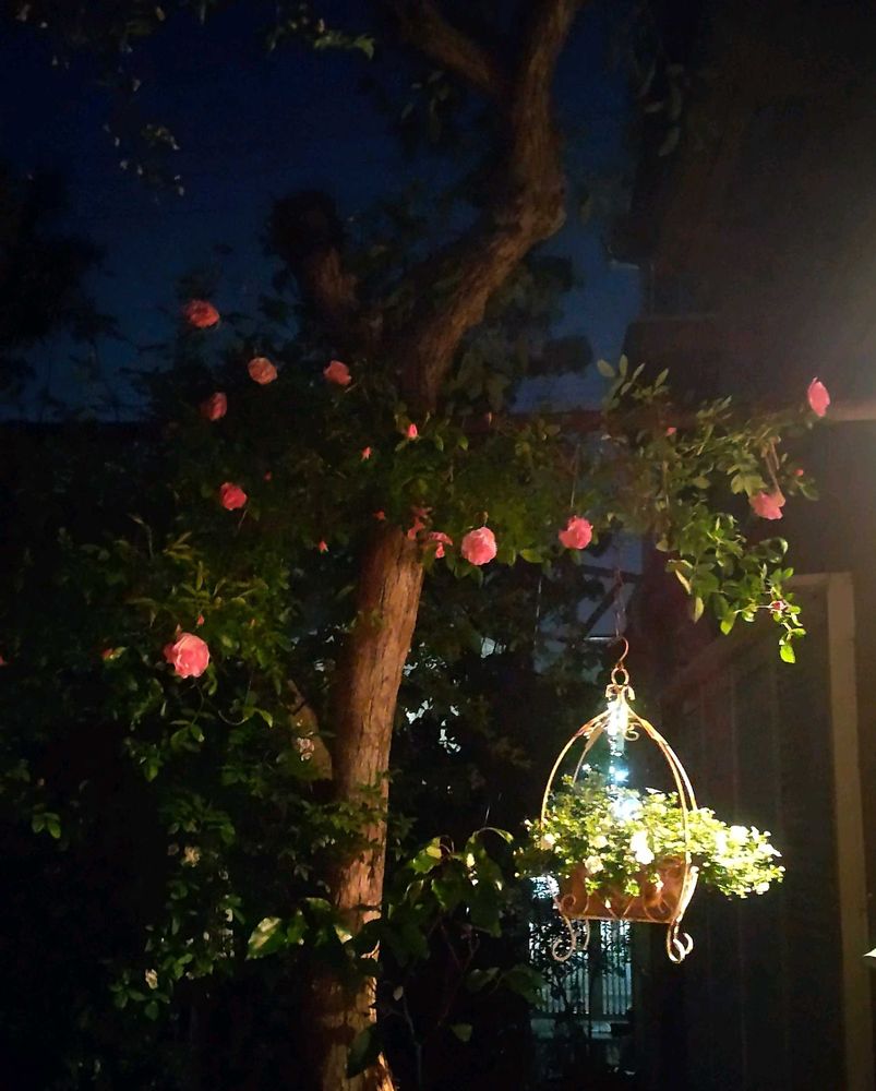 ピンクのツルバラ闇夜に浮かんで何とも幻想的🩷