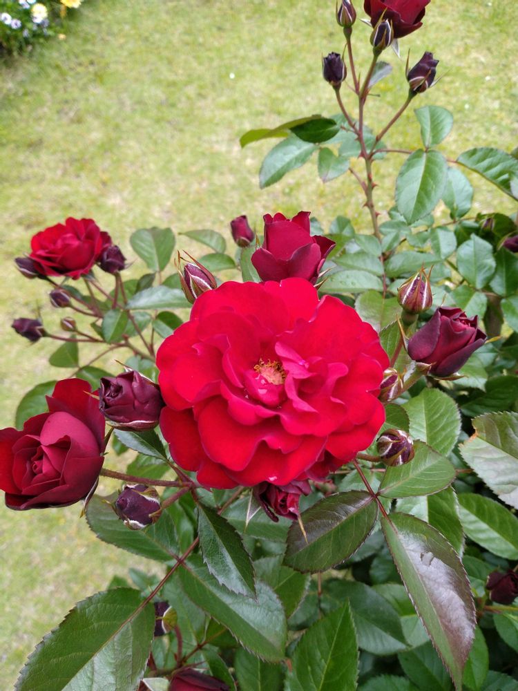 1枚目のバラ、ラバグルートはビロードの様な花弁です。小輪になるのか…でも房咲きで沢山の蕾が上がってきてます。あまり病気には強くないって調べると書いてありますが、今のところ凄く元気!
