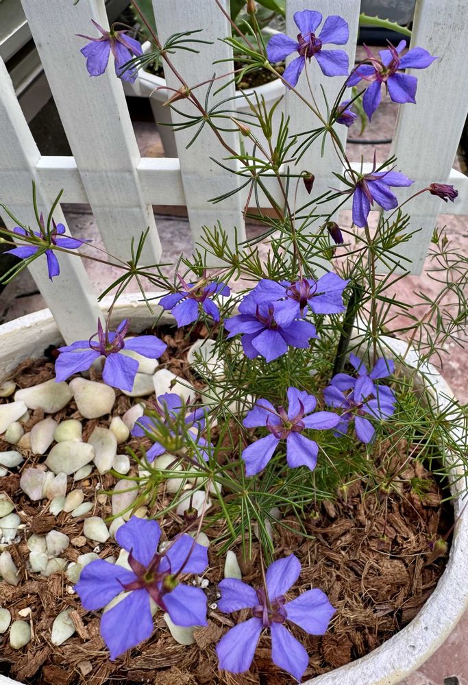 プラティセカ ブルーコメット💙🩵💜真下を向いて咲くようで上から見るのは後ろ姿😂 下から見ると鳥のくちばしのよう 可憐で可愛い儚さ