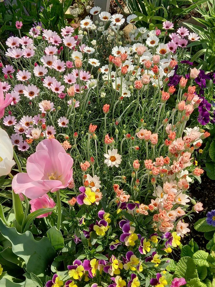 ②地植えの3色 リルピンクも綺麗に咲いてます🤗