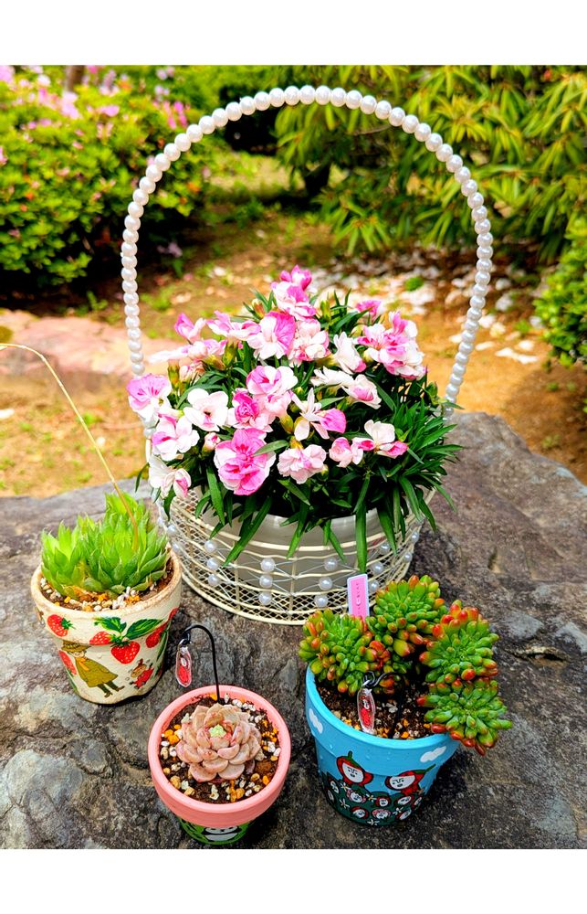 ピンク&プラウドはローズピンクとライトピンクの2色の花がとてもキュートなミニカーネーション (ダイアンサス)。ピンクの模様が花により様々なところがまた愛らしい品種です。メインの開花期は2月始めから5月半ばと3か月以上。そして、秋にも花を楽しむことができます。小さな花がびっしりと咲くのでとても色鮮やか丈夫で他の植物との相性もよく、コンテナや花壇できれいな寄せ植えが楽しめます。