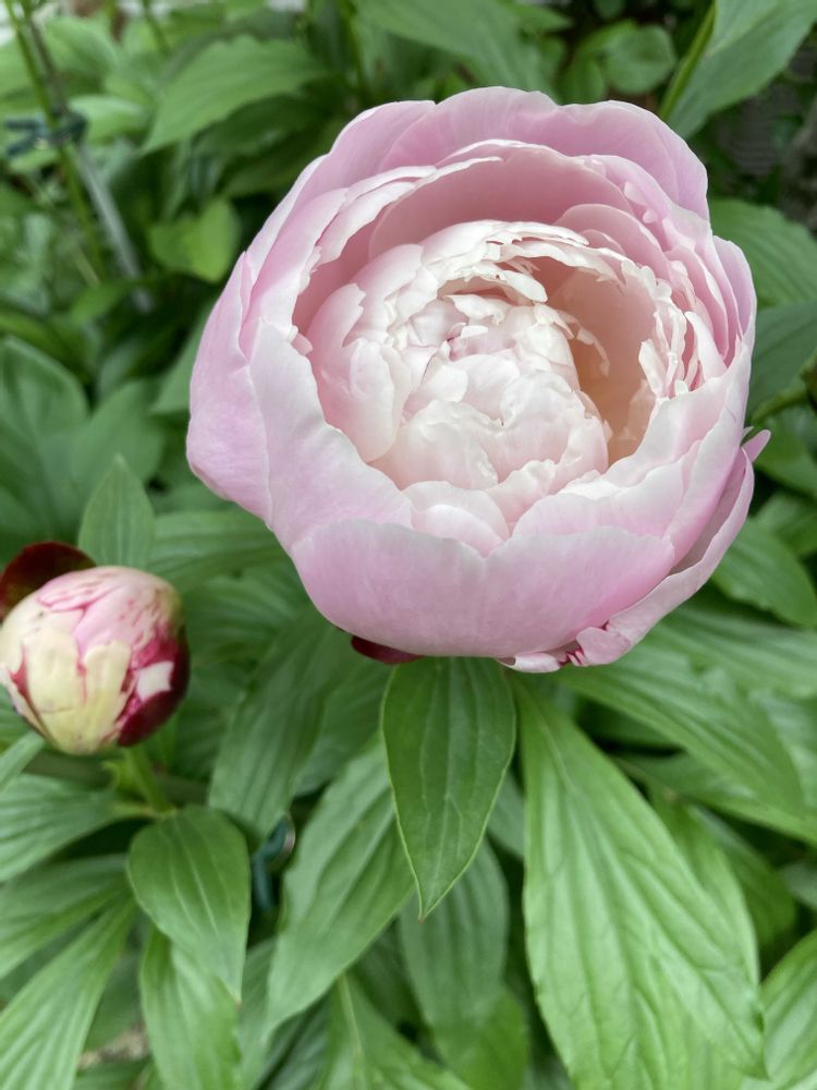 こちらのシャクヤクさん優しいお色味😍✨庭植え?されてるのかなぁ 🏡 鉢植え 大事な蕾♡激しい☔対策で室内へ💨😙✌️