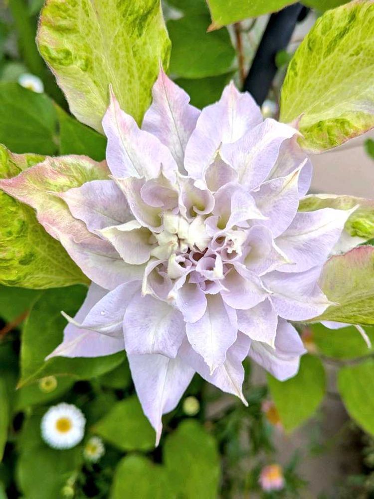 クレマチスの咲き始めだけ、どの品種も葉っぱが花びら色に染まるの面白いですね
