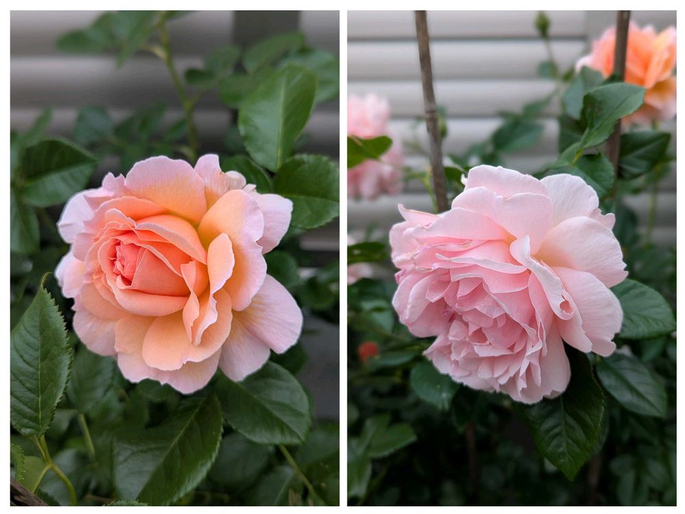 咲き始めはアプリコット色ですが、咲ききると薄いピンクに変化します。